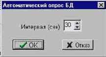 Рис. 5.2.4а. Форма для установки интервала автоматического опроса БД